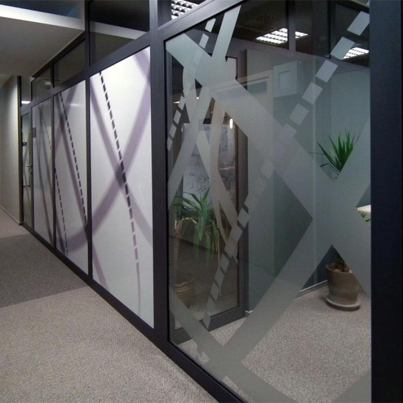 - wybór wzorów folii piaskowych z nadrukiem lub pół-piaskowych i pół-przezroczystych