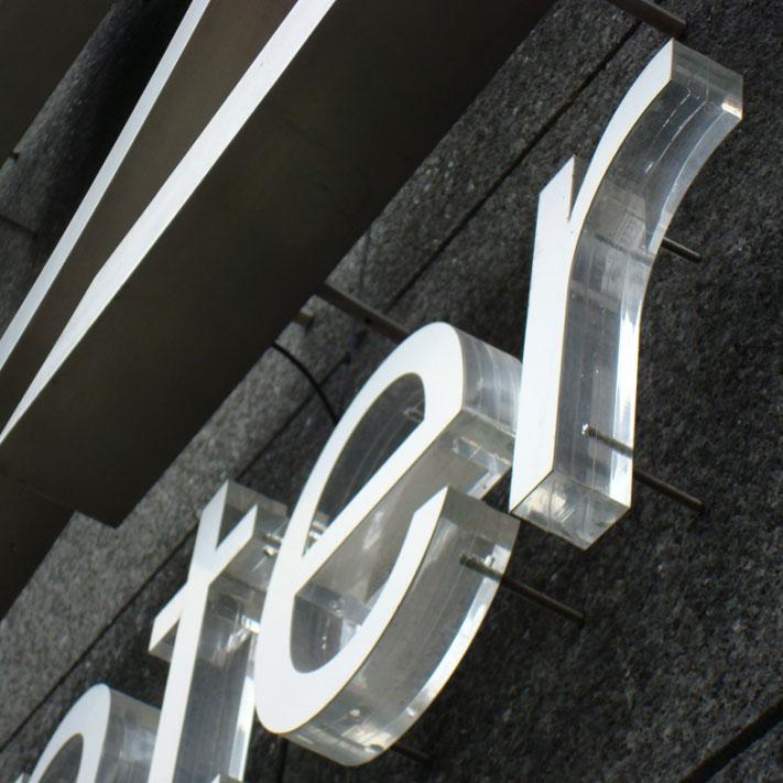 Litery, znaki wycinane laserowo z plexi.