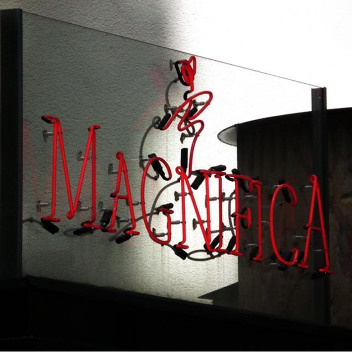Stara, ciągle niezastąpiona technologia. Idealnie równe świecenie rurek ciągle nieosiągalne dla techniki ledowej. Tam, gdzie projekt przewiduje cienką linię liter niezabudowane rurki neonowe to jedyne rozwiązanie. Być może za dwadzieścia lat jedynym neonem będzie napis muzeum, ale dzisiaj to wciąż efektowna i rzucająca się w oczy forma oznakowania. Niestety neony charakteryzują się stosunkowo małą żywotnością.