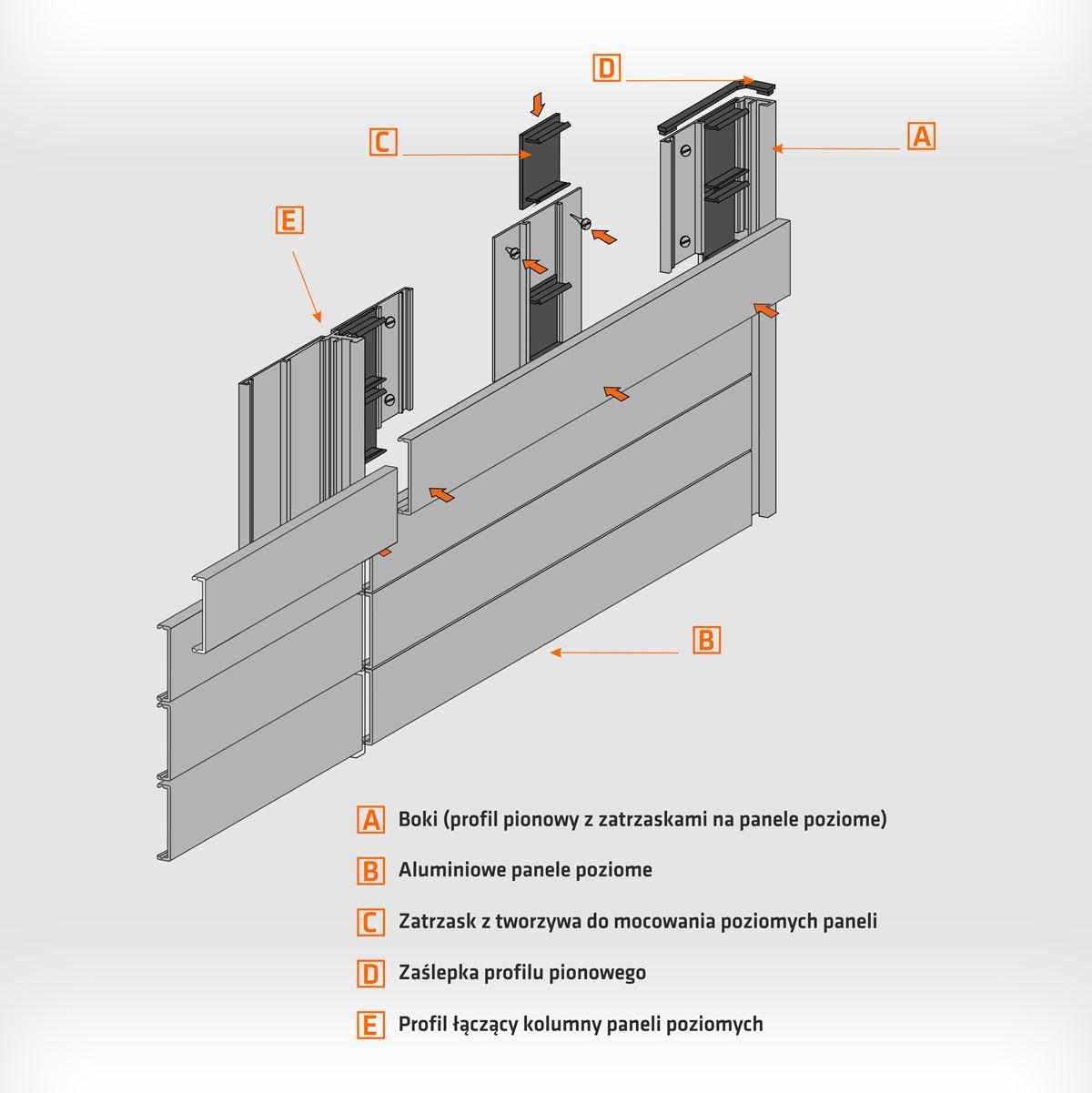 Systemowe tablice informacyjne złożone z poziomych paneli aluminiowych, mocowanych zatrzaskowo do pionowych boków. Informacje nanoszone przy pomocy folii samoprzylepnej lub w postaci wydruków z kartonu (w przypadku profili na wsuwki).