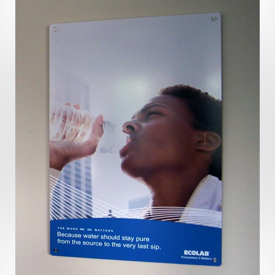 Płyty najczęściej z plexi przezroczystej, szkła lub metalu z nadrukiem lub wyklejane folią.