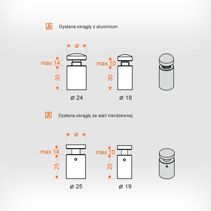 Złączki dystansowe wykonane z aluminium anodowanego lub stali nierdzewnej.