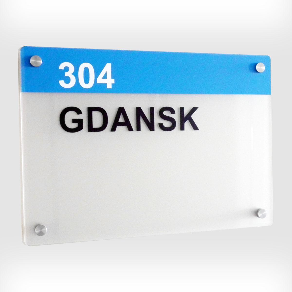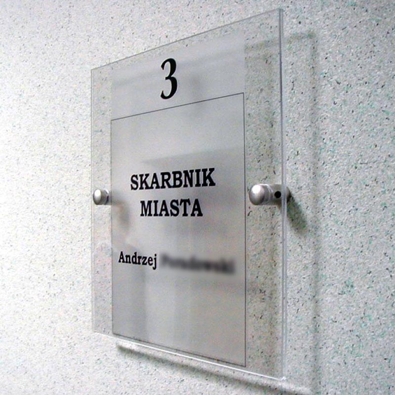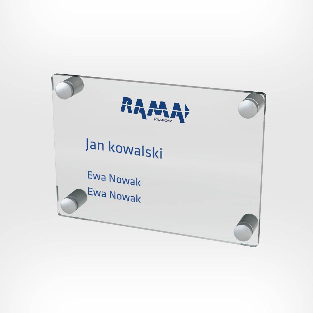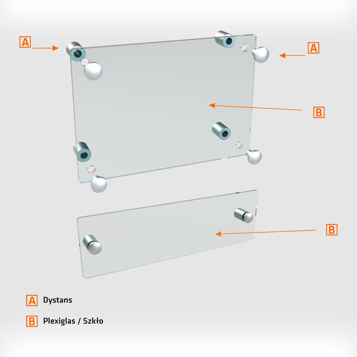 Tabliczki przydrzwiowe dystansowe szklane lub z plexi składają się z następujących elementów: