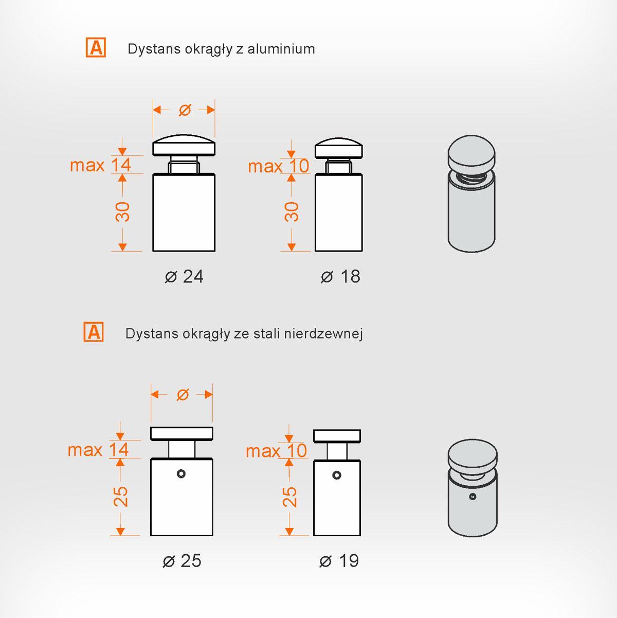 - Złączki dystansowe wykonane z aluminium anodowanego lub stali nierdzewnej.