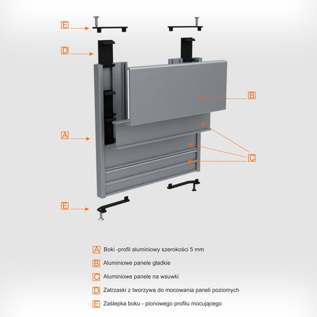 - poziome panele aluminiowe (B, C)